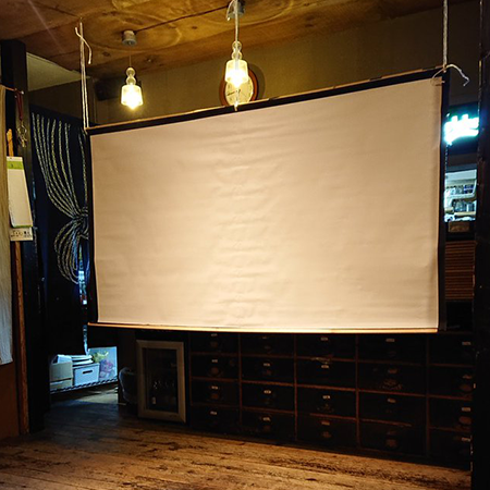 ※店内に大スクリーン、プロジェクター、音響設備を設置。